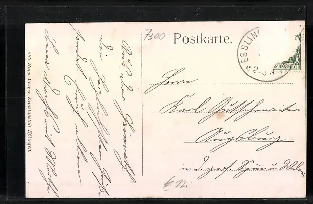 alte Ansichtskarte, gelaufen, Briefmarke tw. entfernt, rückseitig Oberflächenschaden, Stempelspur, guter Zustand