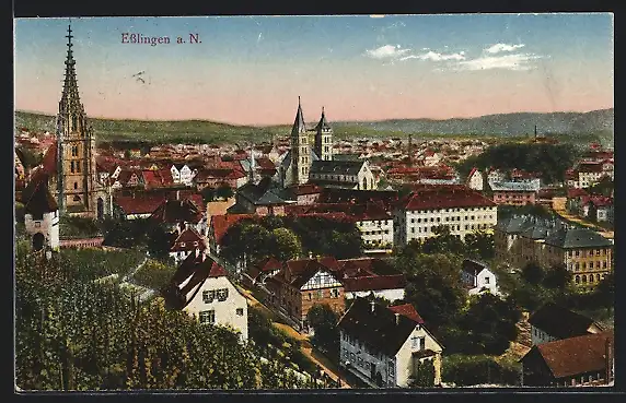 AK Esslingen a. N., Totalansicht über Dächer mit Kirchtürmen
