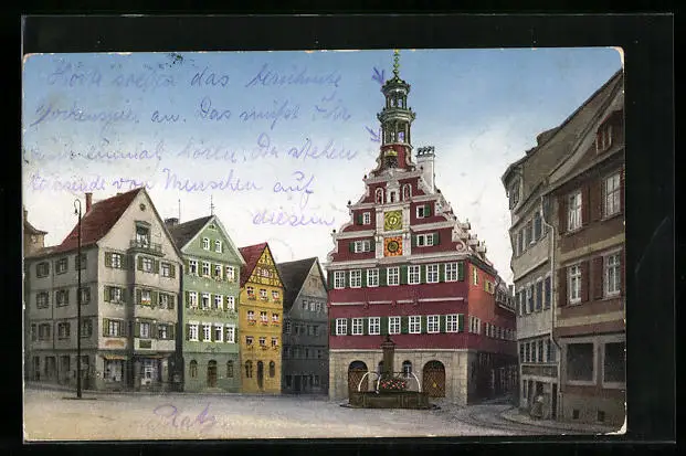 AK Esslingen a. Neckar, Marktplatz mit Brunnen