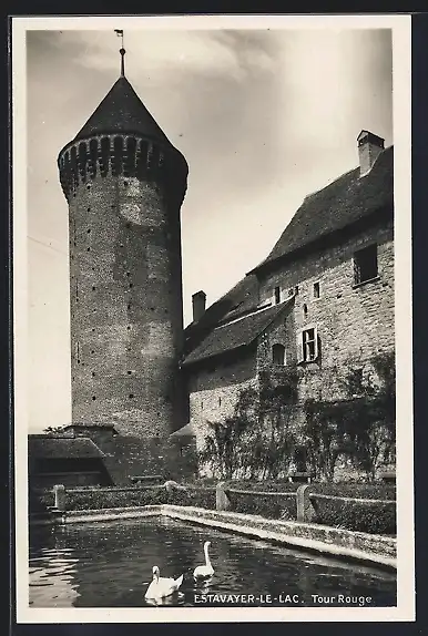 AK Estavayer-le-Lac, Tour Rouge, Schwäne