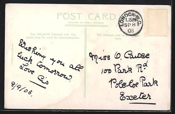 gelaufen 1905, Briefmarke entfernt, Stempelspur, guter Zustand