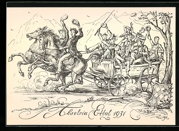 AK Ettal, Absolvia 1931 - Junge Männer auf Pferdekutsche