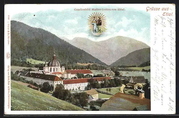 AK Ettal, Ortsansicht, Gnadenbild Mutter Gottes von Ettal