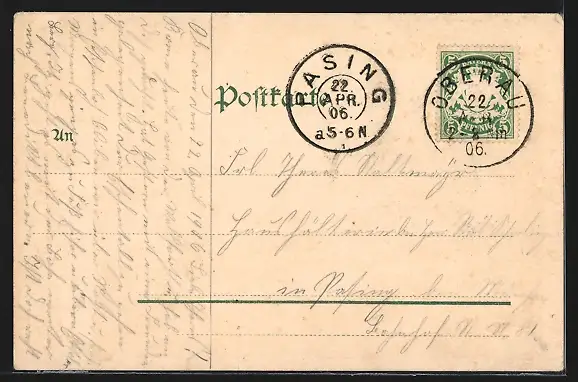 alte Ansichtskarte, gelaufen 1906, Eckknick oben re., guter Zustand