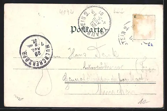 alte Ansichtskarte, gelaufen 1901, Briefmarke entfernt, guter Zustand