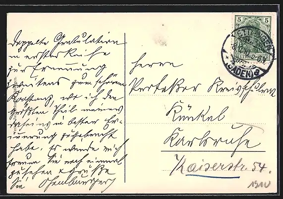 alte Ansichtskarte, gelaufen 1910, guter Zustand