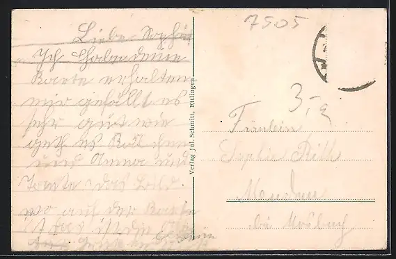 alte Ansichtskarte, gelaufen, Briefmarke entfernt, rückseitig Oberflächenschaden, guter Zustand