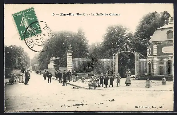 AK Eurville, La Grille du Château et passants devant l`entrée