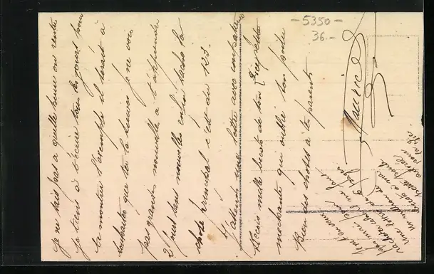 Personenbezogene Daten auf der Rückseite der Karte wurden durch blauen Textmarker unkenntlich gemacht. Die blauen Stellen sind auf die Vorderseite durchgeweicht und wirken sich negativ auf das Postkartenfoto aus