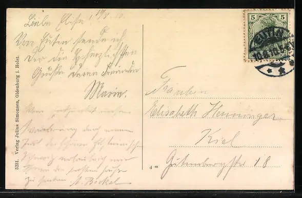 alte Ansichtskarte, gelaufen 1910, guter Zustand