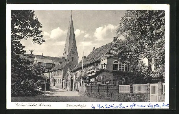 AK Eutin /Holst. Schweiz, Wasserstrasse mit Kirche