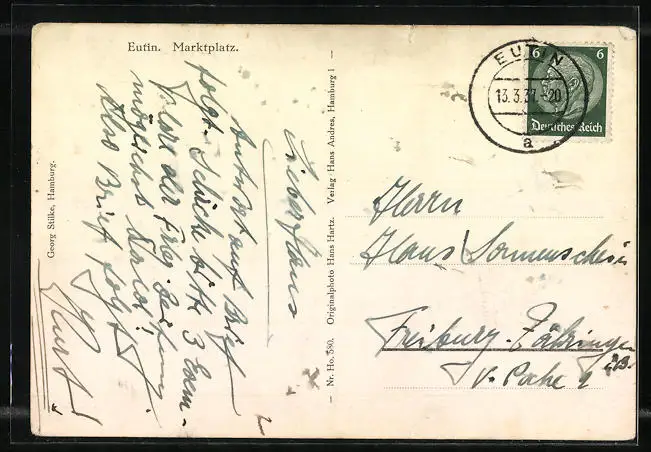 gelaufen 1937, Einriss oben Mitte, guter Zustand