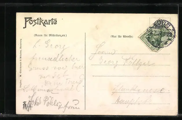 alte Ansichtskarte, gelaufen 1907, Eckknick unten links, guter Zustand