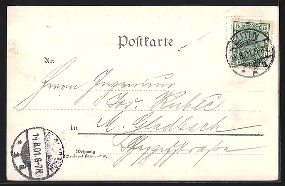 alte Ansichtskarte, gelaufen 1901, guter Zustand