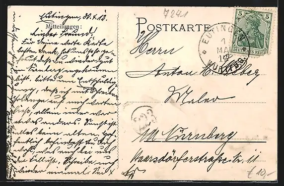 alte Ansichtskarte, gelaufen 1912, guter Zustand