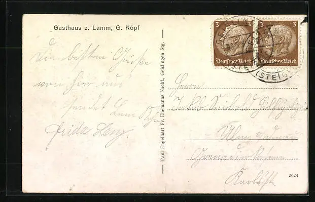 alte Ansichtskarte, gelaufen 1933, Einrisse li., Stecknadelloch re. unten und oben mittig, guter Zustand