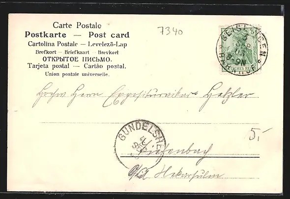 gelaufen 1903, minimaler Einriss re. mittig, guter Zustand