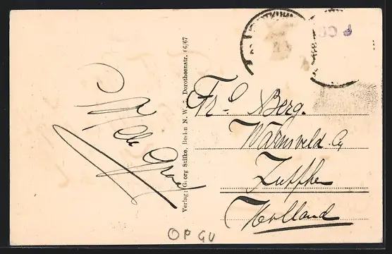 alte Ansichtskarte, gelaufen, Briefmarke entfernt, guter Zustand