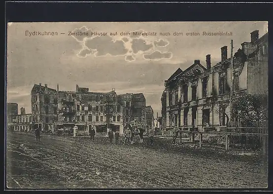 AK Eydtkuhnen, Zerstörte Häuser auf dem Marktplatz