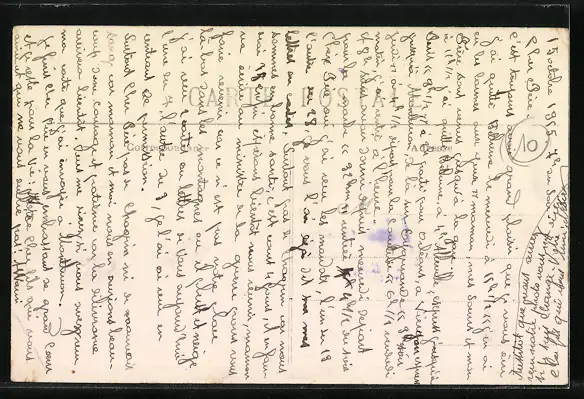 Personenbezogene Daten auf der Rückseite der Karte wurden durch blauen Textmarker unkenntlich gemacht. Die blauen Stellen sind auf die Vorderseite durchgeweicht und wirken sich negativ auf das Postkartenfoto aus