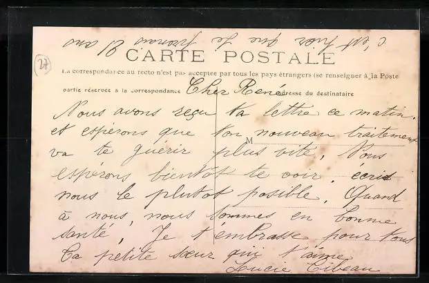Personenbezogene Daten auf der Rückseite der Karte wurden durch blauen Textmarker unkenntlich gemacht. Die blauen Stellen sind auf die Vorderseite durchgeweicht und wirken sich negativ auf das Postkartenfoto aus