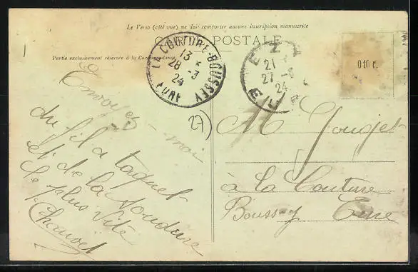 gelaufen 1924, Briefmarke entfernt, leicht fleckig, sonst guter Zustand