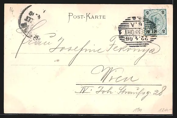 alte Ansichtskarte, gelaufen 1900, guter Zustand