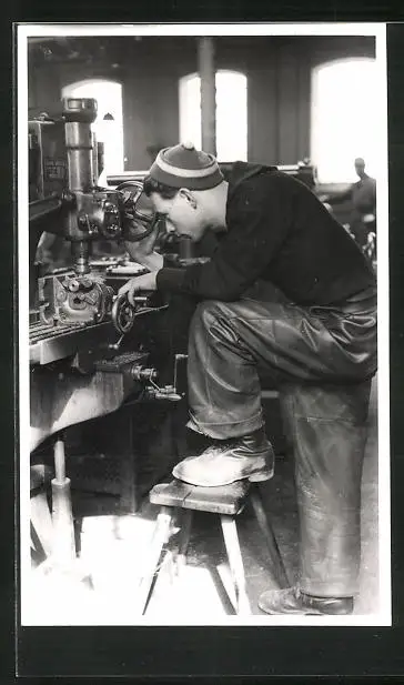 AK Fabrikarbeiter bei der Arbeit an einer Maschine