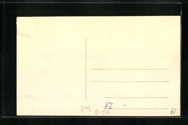 Personenbezogene Daten auf der Rückseite der Karte wurden durch blauen Textmarker unkenntlich gemacht. Die blauen Stellen sind auf die Vorderseite durchgeweicht und wirken sich negativ auf das Postkartenfoto aus