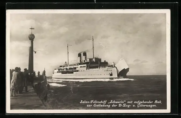 AK Fährschiff Schwerin mit aufgehender Bak