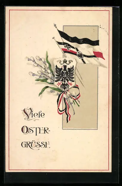AK Fahnen, Reichsadler, Weidenkätzchen - Ostergruss