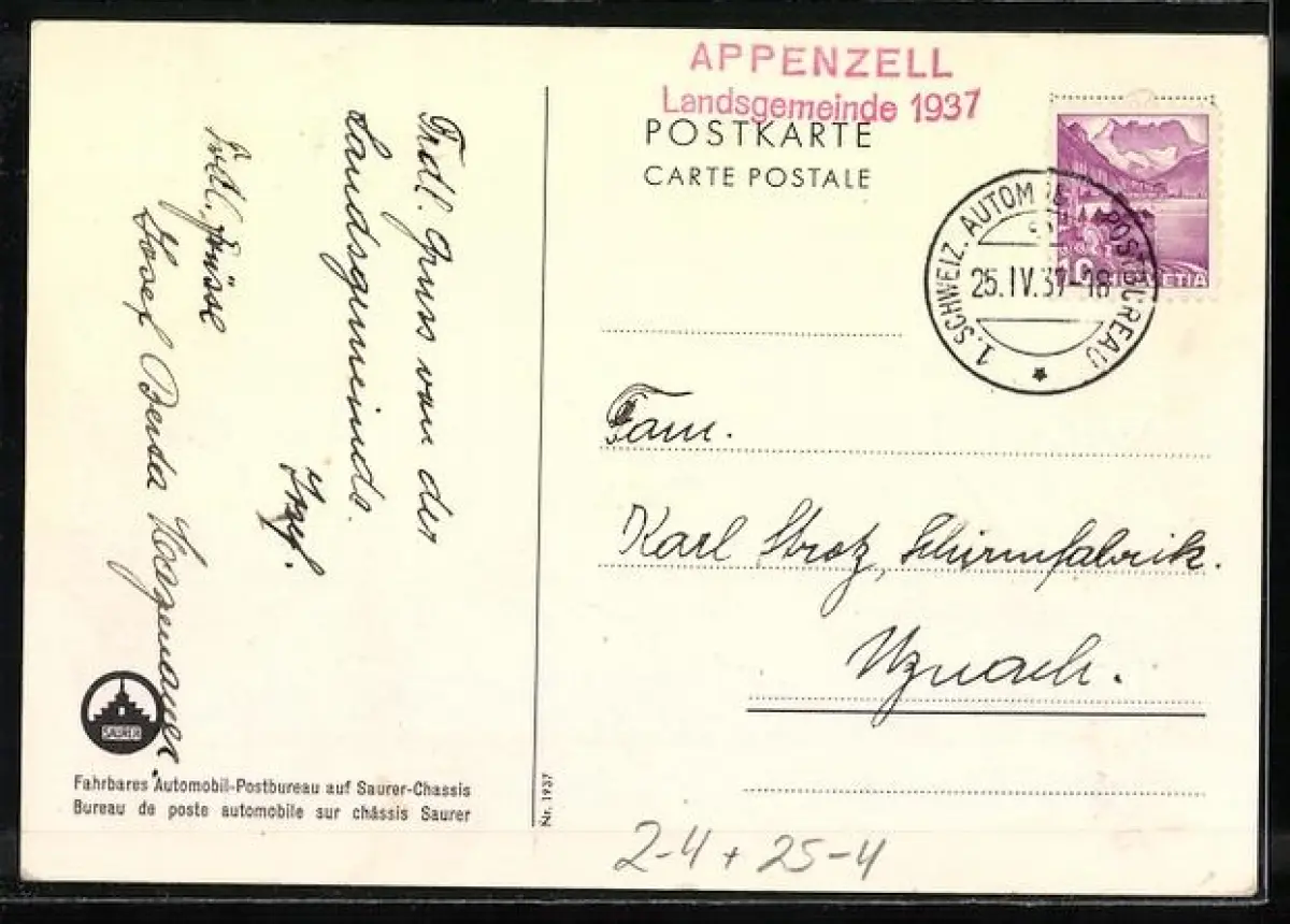 AK Fahrbares Automobil-Postbureau auf Saurer-Chassis, Lastkraftwagen, Post