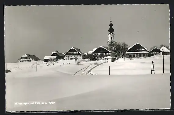 AK Faistenau, Ortsansicht mit Kirche im Schnee