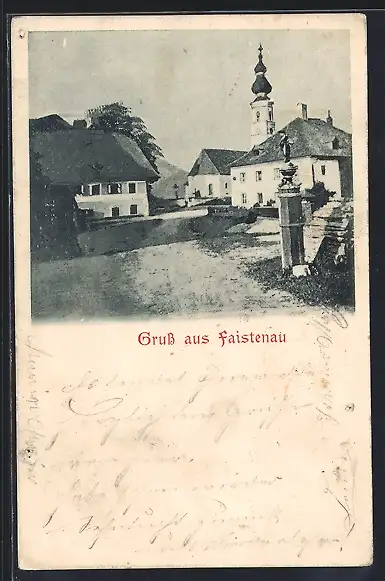 AK Faistenau, Strassenpartie mit Kirchturm
