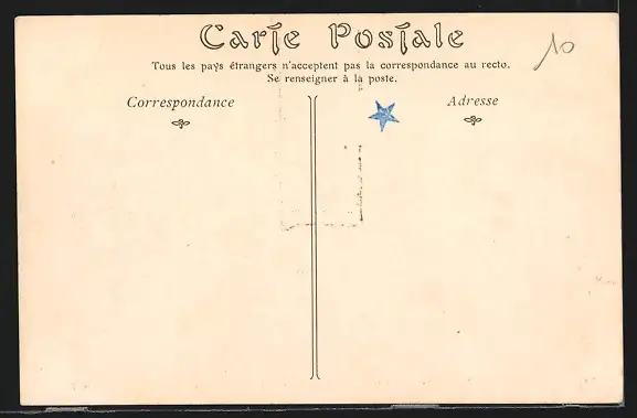 Personenbezogene Daten auf der Rückseite der Karte wurden durch blauen Textmarker unkenntlich gemacht. Die blauen Stellen sind auf die Vorderseite durchgeweicht und wirken sich negativ auf das Postkartenfoto aus