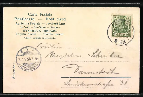 alte Ansichtskarte, gelaufen 1905, Eckknick u. minim. Einriss unten re., guter Zustand