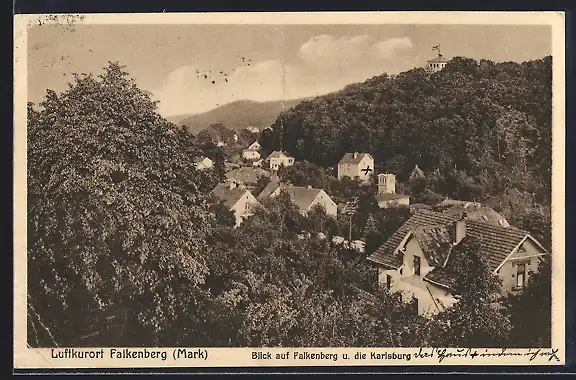 AK Falkenberg /Mark, Ortsansicht mit Karlsburg aus der Vogelschau