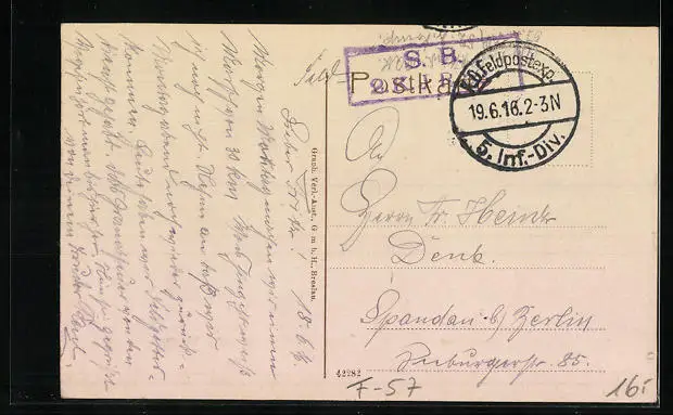 alte Ansichtskarte, gelaufen 1916 als Feldpost, guter Zustand