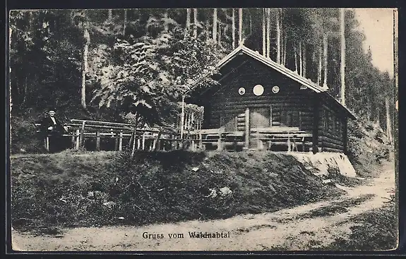 AK Falkenberg /Opf., Blockhütte Waldnabtal am Waldrand