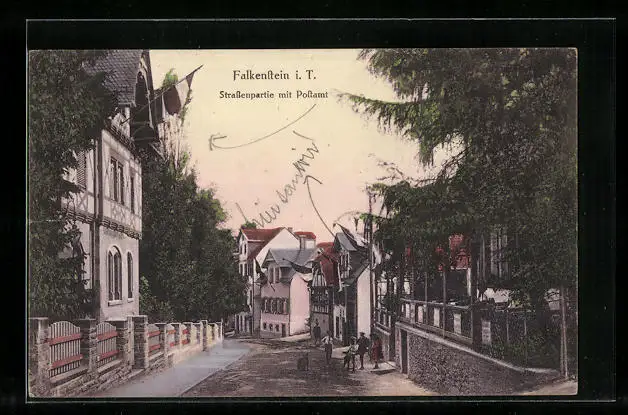 AK Falkenstein i. T., Strassenpartie mit Postamt