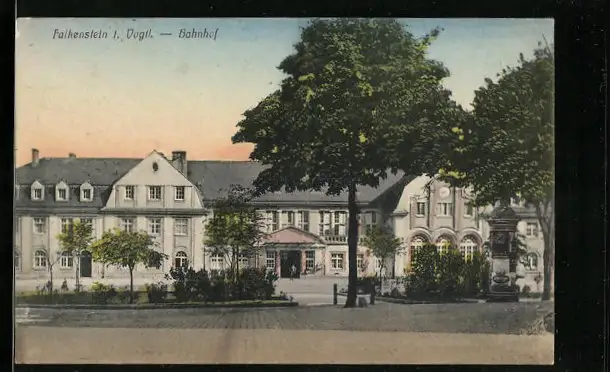 AK Falkenstein i. Vogtl., Ansicht des Bahnhofes mit Vorplatz
