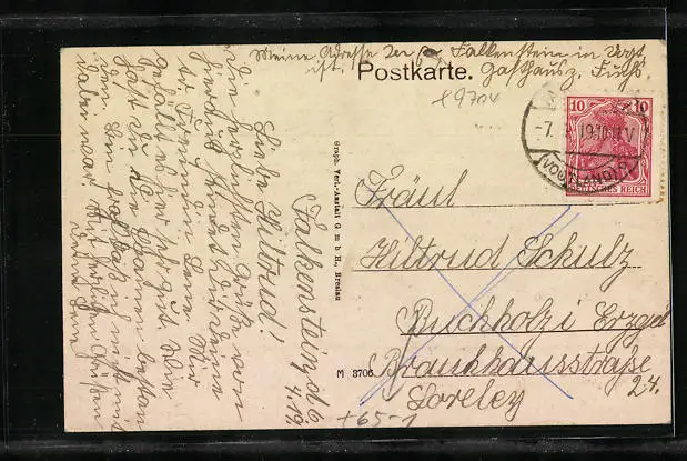 alte Ansichtskarte, gelaufen 1910, guter Zustand