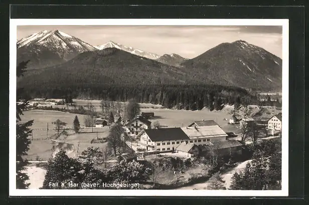 AK Fall a. Isar, Totalansicht mit Gebirgskette