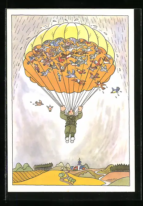 AK Fallschirmjäger der NVA mit Vögeln in der Luft