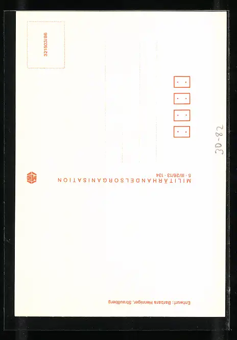 Personenbezogene Daten auf der Rückseite der Karte wurden durch blauen Textmarker unkenntlich gemacht. Die blauen Stellen sind auf die Vorderseite durchgeweicht und wirken sich negativ auf das Postkartenfoto aus