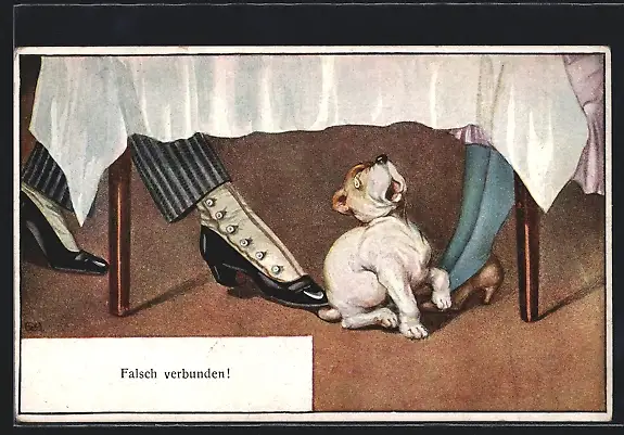 AK Falsch verbunden, Hund unter dem Tisch eines Paares