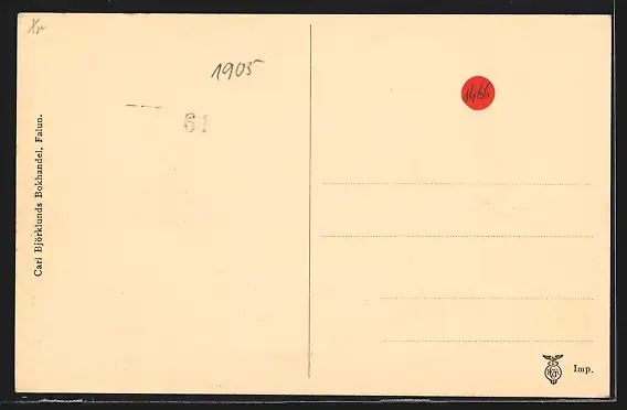 Personenbezogene Daten auf der Rückseite der Karte wurden durch blauen Textmarker unkenntlich gemacht. Die blauen Stellen sind auf die Vorderseite durchgeweicht und wirken sich negativ auf das Postkartenfoto aus
