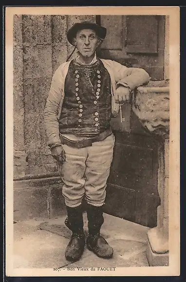 AK Faouet, Bon Vieux, Alter Mann in Tracht