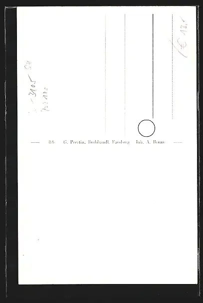 Personenbezogene Daten auf der Rückseite der Karte wurden durch blauen Textmarker unkenntlich gemacht. Die blauen Stellen sind auf die Vorderseite durchgeweicht und wirken sich negativ auf das Postkartenfoto aus