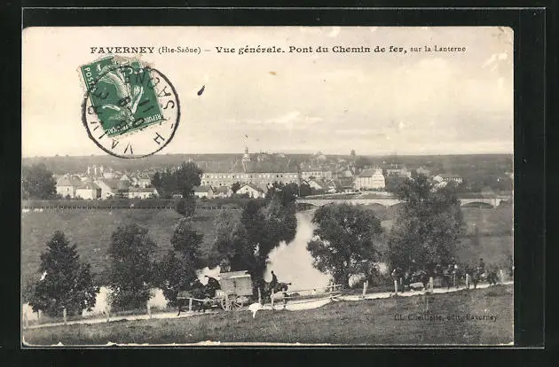 AK Faverney, Vue générale, Pont du Chemin de fer sur la Lanterne